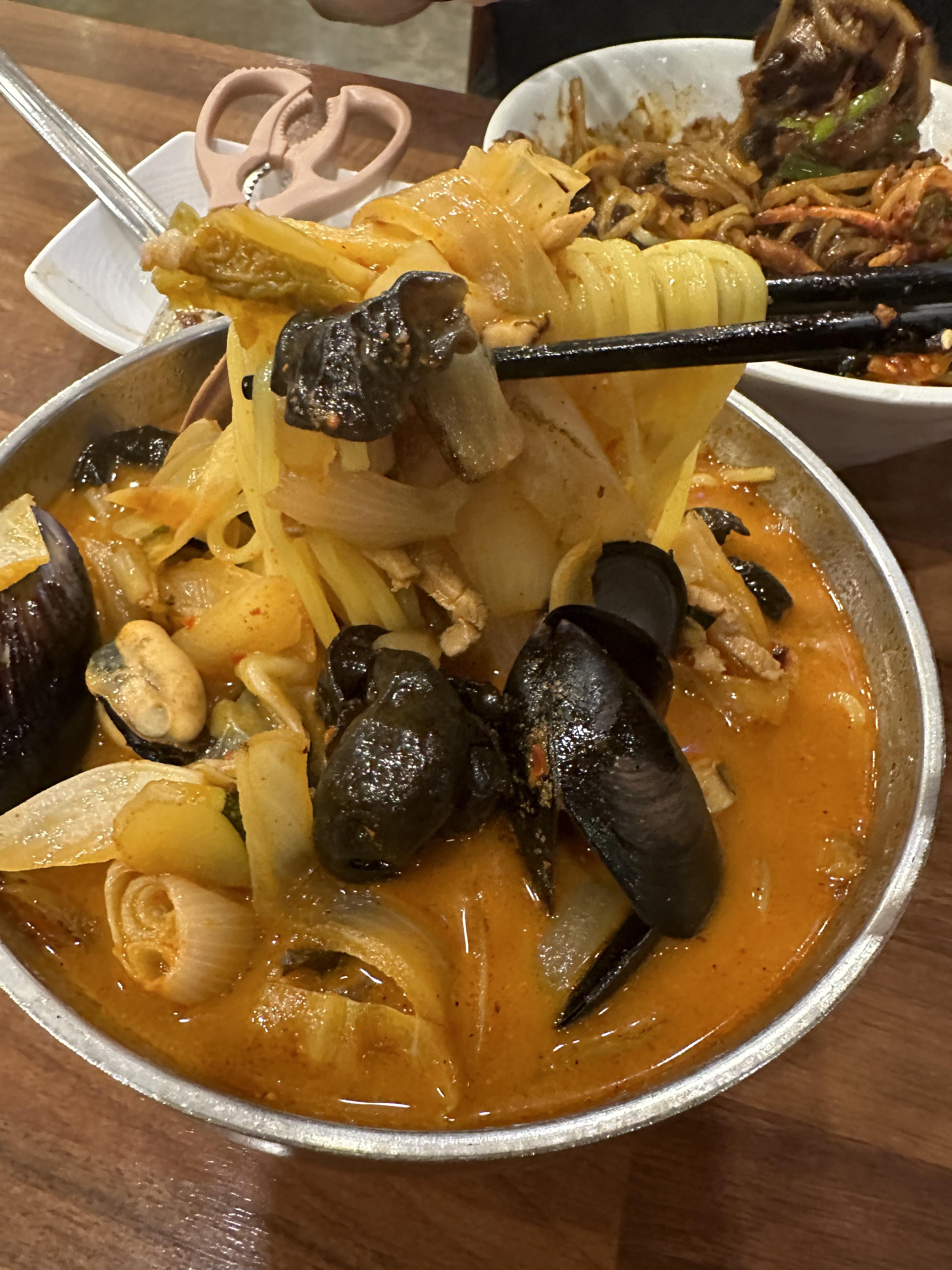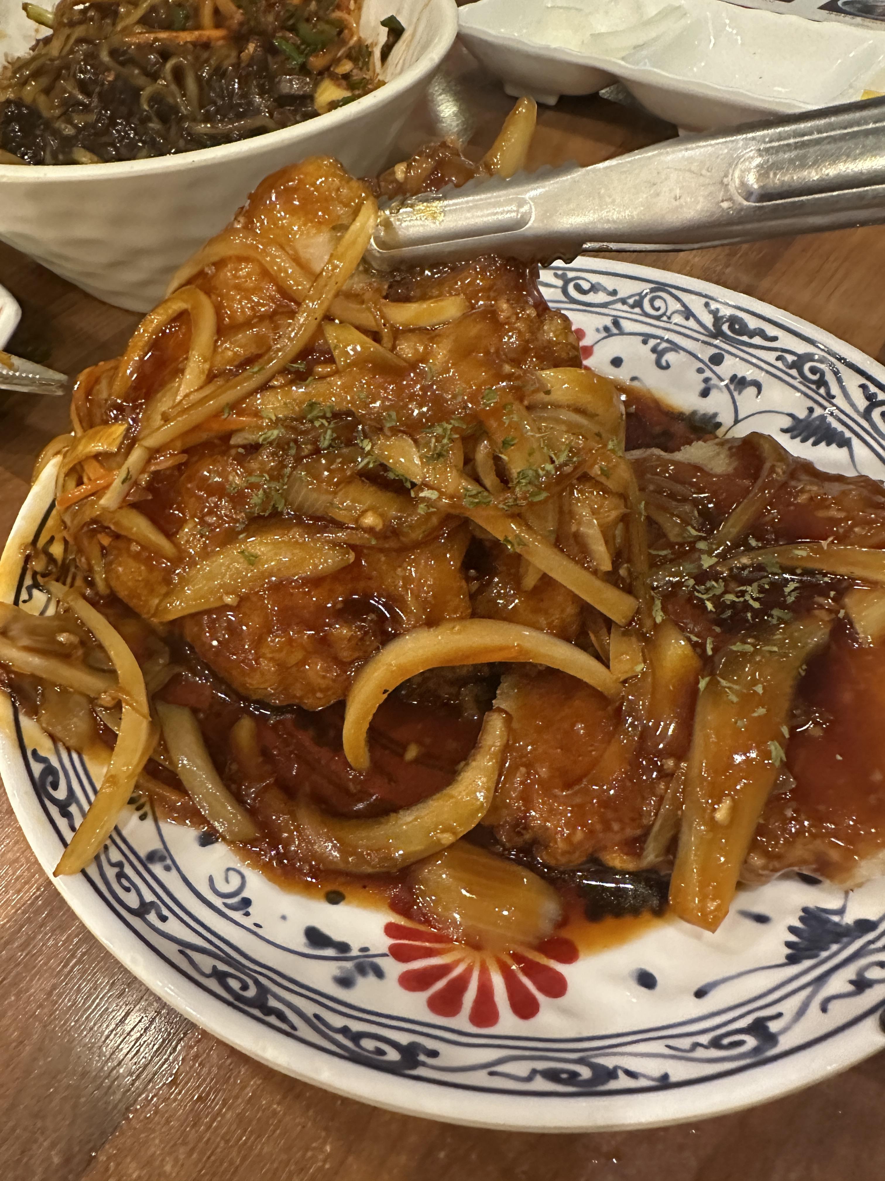 광교가 주차하기가 너무 불편해요 여기 도마찬가지 주차공간이 넓지 않아 조금 떨어진 곳에 새워두고 걸어왔습니다 들어가자마자 신기한 인테리어 안에 복층 식으로 2층이 있더라고요 여기가 그렇게 맛집이라고 하던데 입구부터 맛집인증마크를 달고 계시더라고요 들어가서 앉았는데 앉자마자 시원한 물 한잔 저는 일반생수보다 저렇게 무언가 우린 물을 주는데 가 정이가 더라고요 메뉴가 너무 많아 눈이 돌아갔습니다 저희는 짜장면에 짬뽕에 찹쌀탕수육을 시켜 먹었습니다 자장은 비주얼이 엄청 자극적일 거라는 비주얼인데 생각보다 많이 자극적이진 않았습니다 입에촥촥감기는게 짜장면에 손이 자꾸 가더라고요 짬뽕은 여기는 진짜국물맛집 짬뽕국물이 너무 시원하고 마시면 크악 자동으로 나옵니다 찹쌀탕수육은 소스를 부어가지고 나오는데 진짜 쫀득하고 맛있더라고요 찍먹파는 이것은 패스 너무 맛있어서 가끔 생각날 거 같은 맛이었습니다