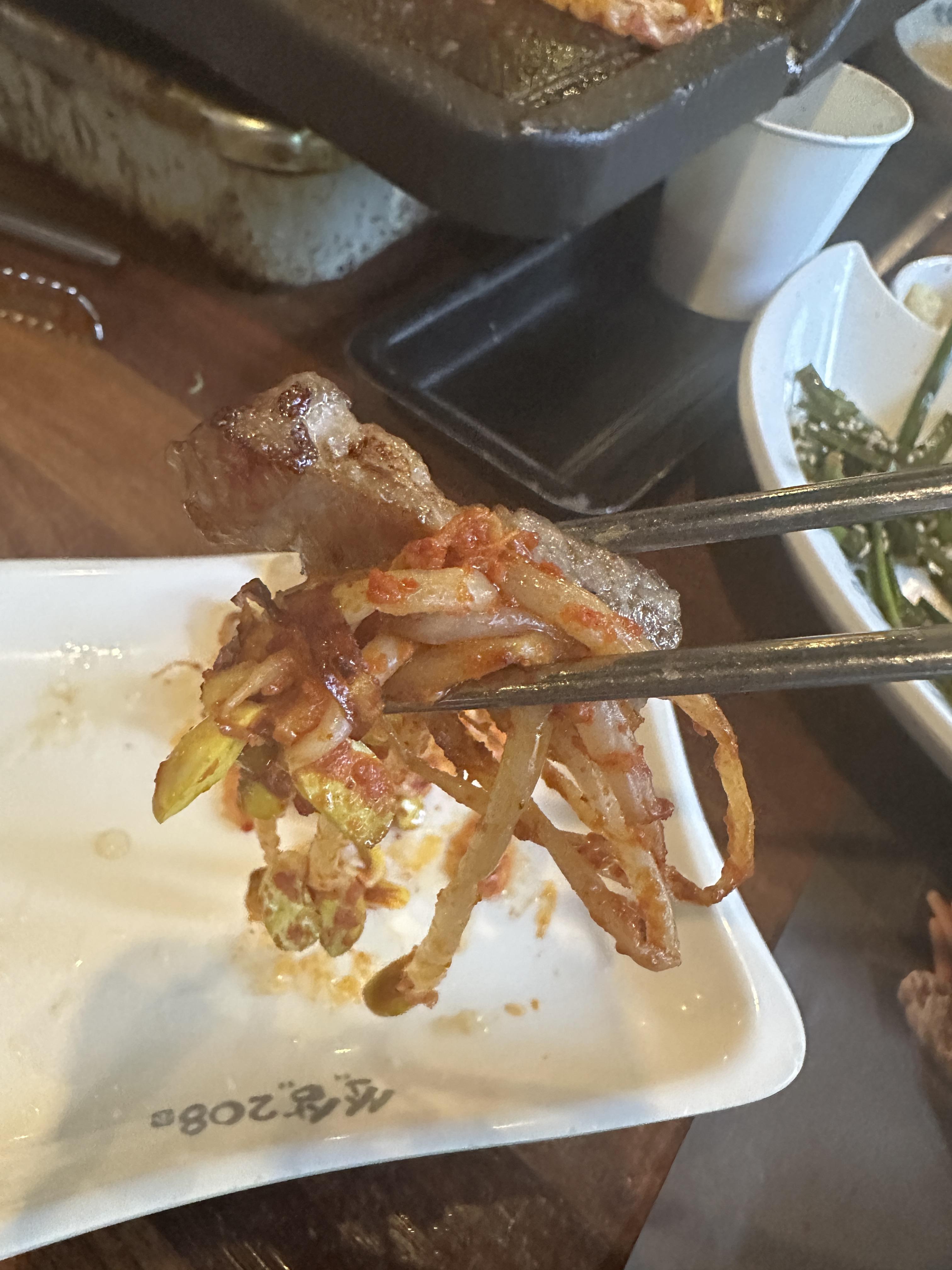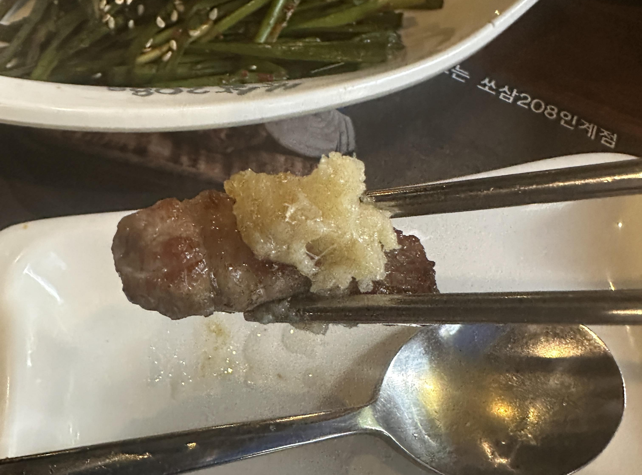 저는 개인적으로 이렇게 마늘 간 거? 랑같이 먹었는데 너무 맛있더라고요 반찬은 그렇게 많은 건 아니라 약간 아쉬웠지만 고기맛과 질 서비스 때문에 너무 좋았습니다